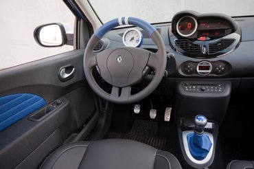 Mindezt ráadásul minimális befektetéssel tették, hiszen a mezei Twingo RS majdnem mindenben azonos a tesztautóval. Már korábban is megvolt a kemény kupés futómű, a pörgős egyhatos motor, de még a kétszínű fényezés is: a ködlámpa-kereteket, a tükörházakat és a hátsó spoilert már eddig is más színűre festették az RS-eken, mint a karosszéria többi részét. A Gordini elsősorban a feltűnő színösszeállítással nyújt többet: a metálkék és a fehér kombinációja vonzza a szemet, különösen a kék belsejű 17-es felnikkel, illetve a két fehér matricacsíkkal kombinálva. Ez utóbbiakat amúgy nemigen érdemes közelről nézegetni: egyrészt a messziről láthatatlan, világosszürke G betűs mintázattól olyanok, mintha valaki elfelejtette volna lehúzni róluk a külső védőfóliát, másrészt a ragasztószalagok vége és a karosszériaelemek közti jelentős hézag sem valami igényes megoldás.