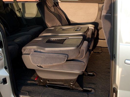 Itt lenne is pár kritikai észrevételem az ülésekkel kapcsolatban. Ha esetleg fészliftre kerül majd sor, jó ötlet lenne átvenni a különálló üléses elrendezést is. Míg a kis tesóból szinte bárki könnyedén kapkodja ki és rendezgeti az üléseket, itt minimum két ember kell a 2+1 elrendezés miatt. Így a bal oldali tolóajtó ellenére is nehézkes a balról való beszállás, hiszen nincs közösítve a döntési mechanika, így először a két háttámlát kell külön-külön előredönteni, aztán az egész kb 40 kilós tömböt megborítani, és így szabadul fel az út. Szerencsére van benne egy kis rásegítő teleszkóp.