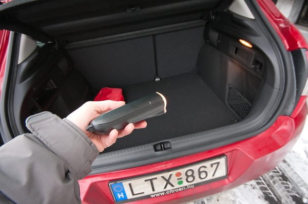 És belül is. Pont akkora, amekkorának egy ilyen kocsi szokott leni: hátul nem egy Superb, de nem is ez a cél, nem szűkebb vagy tágasabb, amit a hasonló autóktól elvárunk. A csomagtartója állítólag csak 380 liter, ha van pótkerék (a tesztautóban volt). Ez tök átlagos érték, pedig ránézésre hatalmasnak tűnt, talán azért, mert a kisautó-összehasonlító teszt méretei beleégtek a szemembe. Nem tudom, a lényeg: ugyanaz a gyerekülés, amit a C3-Swift-i20 hármasból csak kettőben fért el, az a C4-esben szabályosan lötyögött. A méretek tehát teljesen rendben.