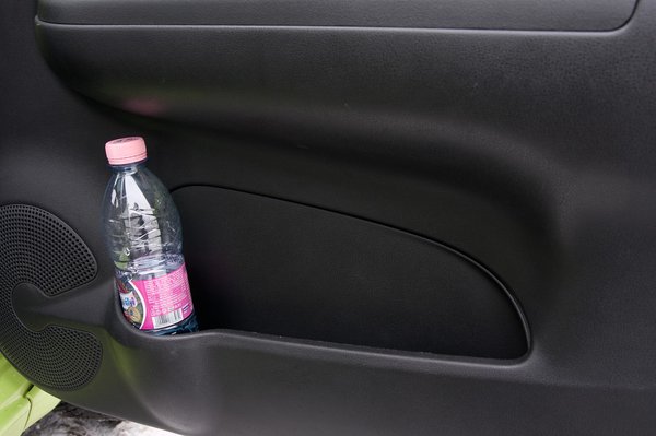 A nemzetközi bemutatón nagyon nem tetszett a műszerfala, a teszt alatt viszont megszoktam. Mondjuk, jól áll neki a távolság, megérinteni pedig szigorúan tilos, de a legnagyobb baja, hogy nincs benne egy nagyobb tárolóhely, csak sok kisebb. A rettenetes kemény anyag legalább nem karcosodik, de a kongása biztos hozzájárul az autó dobozjellegű akusztikájához. Az ajtópanel jobban horpadozik a kelleténél, de ennyiért mit várhat az ember?