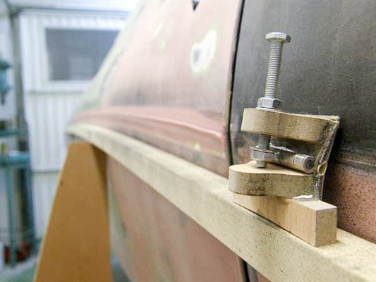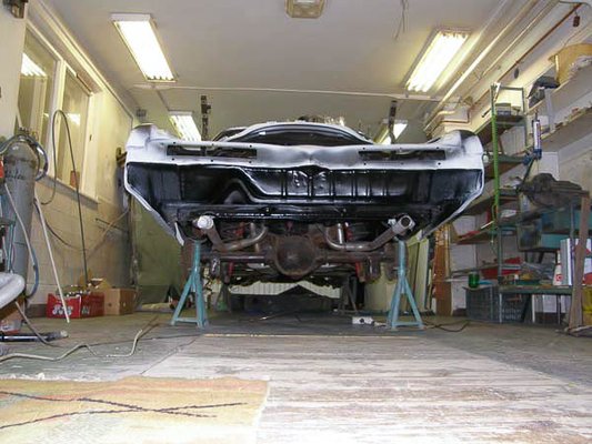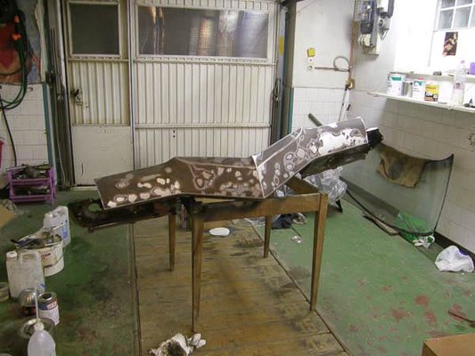 Spaklival, hőlégfúvóval, drótkoronggal a fémig csiszolta a lemezeket. A homokfúvás nem volt opció, hiszen a karosszéria és az alváz teljes szétválasztása szóba sem jöhetett. Így is komoly taktikázásra volt szükség, hogy legalább részlegesen el lehessen emelni a testet a váztól, hogy a csatlakozási pontok környékét le tudja ápolni. Amikor elért a fémig, hajózási epoxival kezdte a rétegrendet – ez sokkal lassabban, 24 óra alatt szárad, viszont tovább formázható, sokkal tapadékonyabb, mint az autós.