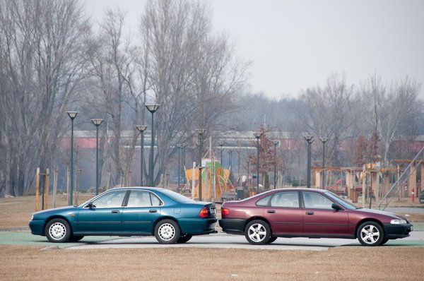 Hátul mindkettő egész kellemes; a 2,7 méteres tengelytáv ma is a használható belterű autók sajátja. Egyik autóval se volna hát baj. Szerethető és használható, csak valahogy mindkettő inkább érződik húszévesnek, mint tizenhatnak. A sokat ment taxik fáradt, hagyjatok békében meghalni-érzete hatja át mindkettőt, ami akkor tűnik fel különösen, ha egy ilyen után visszaülök a 14 éves Toyotámba, és az olyan, mint egy új autó. Nagyon elhasználódtak ezek, sokkal jobban, mint a Toyota Carina E-k vagy a hasonló korú szappantartó 626-os Mazdák. De ennyiért csak nagyon hulladék Carinák kaphatók szétrohadt hátsó kerékívvel. A Carina E-nek ráadásul ugyanaz a baja, amiért Toyotás Józsi nem engedte, hogy dízel Land Cruisert vegyek: mivel elpusztíthatatlan autó hírében áll, mindenkit megérint a kihívás, hogy akkor mégiscsak el kéne pusztítani, mégpedig elhanyagolás által.