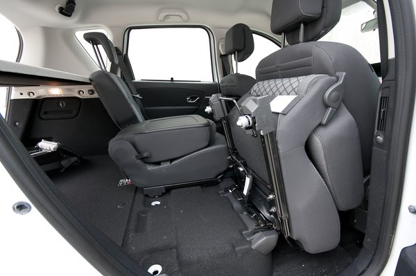 Legnagyobb erénye kétségkívül a helykínálat. A hossza alig több mint 4,3 méter, de öt személy és legalább 435 liternyi csomag fér el benne. Ezt még viszonylag sok autó tudja, a Scénic attrakciója az alkalmazkodóképességében van. A csomagtér a hátsó ülések tologatásával, előrehajtásával és kiszerelésével egyaránt bővíthető, így akár 1,835 köbméternyi tárgy is szállítható hátul, hosszú, keskeny csomagokból pedig akár 2,5 méteres darabok is elhelyezhetők. Ehhez persze az első ülés támláját is le kell dönteni, de a lehetőség így is igen hasznos lehet, hisz néhány lécért vagy egy létráért nem kell tetőcsomagtartóval vagy csomagtartófedél-kötözgetéssel bajlódni.