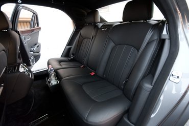 A csomagtartóban hímzett, fekete bőrtokban az elakadásjelző háromszög, ami viszont már egy csalódást keltően OBI-áruházas, egyszerű kivitel. A kárpit alatt egy 21 colos, szép piros mankókerék, elvégre nem sántíthat a Bentley, alatta meg az akkumulátor. Nehéz is lehet Mulsanne-t bikázni a –40 fokos moszkvai hajnalokon a panelház parkolójában.