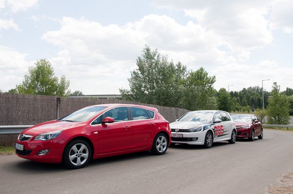 Mégsem az Astráé a legjobb motor, hanem a Golfé. Tényleg olyan, mintha egy nagyobb szívómotor lenne, egyébként százig közel fél másodpercet ráver az Opelre. Mégsem ez a lényeg, hanem a jólfésültség, közlekedésre a TSI motor karaktere a legjobb. Alulról is elhúz, bírja a pörgést és a kettő között pedig természetes az átmenet. A nyomaték maximuma előbb érkezik, mint az Astráé (1500-nál), így mondjuk hatodikban 60-ról már tud akár picit gyorsítani is. Az Opelben ez szinte reménytelen, legfeljebb a sebesség tartására képes.