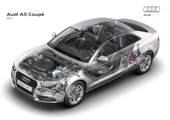 Az A5-vérátömlesztése kiterjedt az Audi más autóiban már elérhető komfort-, biztonsági- és szórakoztató extrákra is. A Google Earth-alapú navigáció (MMI Navigation plus rendszerhez jár) jól néz ki, a grafikus porocesszornak köszönhetően döbbenetesen jó 3D képet ad, és ha lehet, Street View-nézetbe is képes váltani. A rendszer még nagyon új, minden bizonnyal ezért sem tud még kielégítően újratervezni, hajlamos a húsz kilométerrel távolabbi körforgalomban megfordítani minket ahelyett, hogy bevezetne az első utcába vagy letudná egy U-fordulóval. Mivel az A5 integrált kommunikációs rendszere képes az adatátvitelre (Audi connect), így az autó wifi hot-spotként is működik, összesen nyolc csatlakozási ponttal, a mobilnet sim-kártyájának helye a középkonzol SD-kártya slotokat is magába foglaló helyén van kialakítva. A 60 gigabájtos merevlemeznek hála most már menet közben is lehet torrentezni.