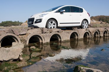 Elinduláskor többnyire elektromos üzemmódban megy a 3008-as, sőt, egy üzemmódváltóval állandó elektromos hajtásra is kényszeríthető, amíg van elég kraft az akksiban. Hivatalosan 4 kilométert tud így menni, de ehhez úgy kell taposni a gázt, mintha nitroglicerint szállítanánk, a gyakorlatban ez inkább 1,5-2. Meglepett, hogy mennyire nem feltűnő a dízelmotor beindulása – ez egyébként a másik nehézség a dízel hibrideknél. A hangszigetelés az előszériás autókon elképesztően jó volt. Lehet, hogy nem is az akku a nehéz, hanem az ólombélés? Még kintről is alig hallható a motor, abból is főleg a turbófütyülés hallatszik, nem a traktorhang.