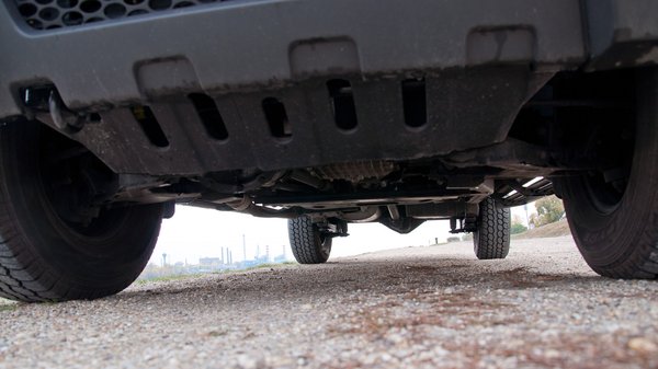 A szabad hasmagassága csak 21 centi, ami a kategóriában nem rossz, nem is sikerült leütni a földutakon. Jól összerakottnak tűnt, egyáltalán nem zörgött, még a hepéken és hupákon se, a sárban is csak egyszer akart elakadni, de a laza 4H-ba kapcsolásnak és az indiai offroad gumiknak köszönhetően gyorsan letudtam. A diferenciálmű automata, 80 százalékig képes összezárni.