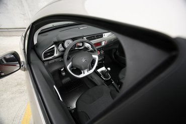 Az üléshelyzet az, amit igazán utáltam mindkét japán autónál: még koppra leeresztett ülések mellett is iszonyat magasan ülünk a kirakatban, ennélfogva a kormány még a legfelsőbb állásában is az ölünkben – ez a Yarisnál rosszabb, mint a Jazznél – forog. A Citroën ülését egyértelműn negyvenkilós, gyöngyhagyma seggű modelleknek találták ki, nagyon rövid az ülőlapja, emberi módon ülni csak a Kiában lehet. A világos betét sokat dob az amúgy fád beltéren, kicsit vidámabb, mint a Hondáé, de az összeszerelés minősége lehetne jobb, itt-ott akad egy kis félreillesztés és egymásra csúszott él.
