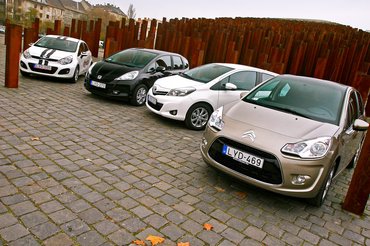 Ami a kiválasztást illeti, 1,3-1,4 literes benzineseket kértünk, 90-100 lóerős teljesítménnyel, közepes felszereltséggel – ez a Toyotánál nem sikerült, abból csúcsverziót kaptunk, kétzónás klímával és más nyalánkságokkal. Lássuk, mit tud ma egy még épphogy elérhető kiskocsi, egyenként!