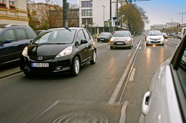 Az alul meglévő gyengeség egy csapásra múlik el, amikor kiérünk a városból, ezeknél a sebességeknél már nagyon él az autó, sőt, autópályán még 130 táján is meghökkentően élénk és rendesen gyorsul. A motor egyébként kifejezetten csendes, és nagy tempónál sem válik túl zajossá az utastér – akár utazóautónak is beválna. Hátránya viszont a többiekkel szemben, hogy városi üzemben többet fogyaszt mindháromnál, én vasárnap (alig kapva piros lámpát) nagy kínnal levittem hét literre, de szerintem reálisabb a 7,5, ami mondjuk a Citroën és a Toyota munkanapos fogyasztásánál már egy literrel, a Jazzhez képest pedig másféllel több.