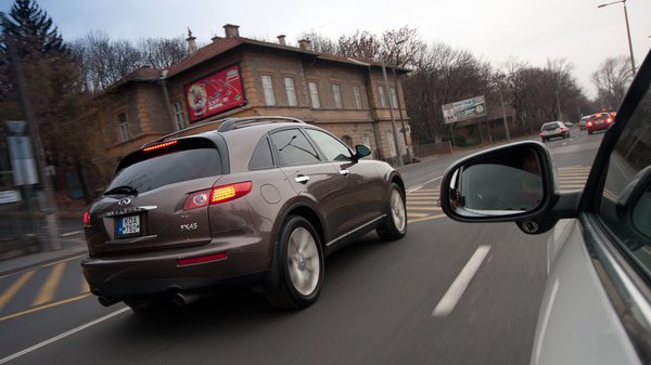 Az Infiniti FX-ről mindenki azt hiszi, hogy valami átpofozott és átcímkézett Nissan Murano, elvégre a fura nevű márka a Nissan gyermeke. Hogy mitől fura a név: angolul kábé úgy fest, mintha nálunk Vegtelen néven akarnának drága kocsikat eladni. De nem baj, az angol nyelv sok mindent elbír. Gondolom, amíg meg nem szokták a vevők, biztos nem volt könnyű eladni a cuccot. Persze mindez nálunk nem számít semmit.
