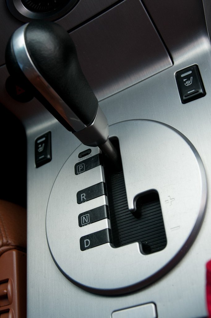 Az FX belső világa egyébként a tipikusan amerikai és Nissan-elemek elegye. Pedálos rögzítőfék, 350Z-stílusú kormány, a műszeregység a kormányoszloppal együtt mozog, amikor állítjuk. Viszont tárolóhely, pohártartó jó sok és jó nagy van. Az első ülések közt két keskeny könyöklő van, ezek külön mozognak előre-hátra. Na, ezekben is van egy-egy tárolóhely, de az egész hóbelebanc egyben is felnyitható, és alatta ott a Hatalmas Könyöklő Alatti Rekesz, az amerikai autósok által vallásosan tisztelt fícsör.