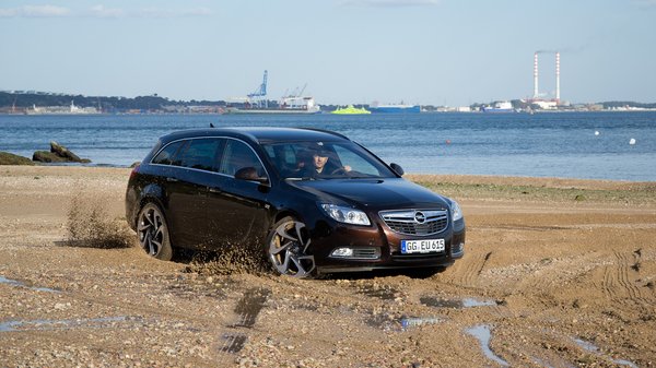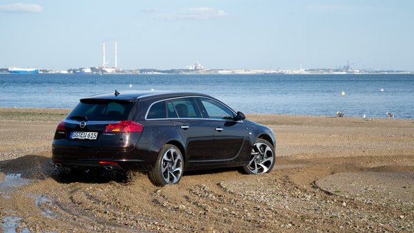 Dolgozik a két turbófeltöltő, és az Insignia nagyon jól viseli a hegyet. Nem küzd vele, vállat vonva teljesíti. Gond nélkül veszi egyik-másik emelkedőt, a futómű jó partnerként asszisztál. A tükörsima aszfalton persze nincs is gondja, de akkor is jól vizsgázott, amikor korábban, a tesztút elején levittük az apály alatt fölszabadult fövenyre. Az összkerékhajtású változatról van szó, amely olyan könnyedséggel mókázott a puha, süllyedős talajon, hogy azt némely SUV is megirigyelhetné; igaz, még órákkal később is köpte az apró kavicsot egy-egy kanyarban. Az összkerékhajtású változatok egyébiránt tavasztól SuperSport futóművel is rendelhetők, elöl az Insignia OPC nagy teljesítményű rugóstagjával.