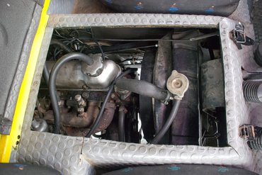 Rendes, magyar rendszámos autó, csak bele kellett ülni, és indulhattunk bele az akkor még igencsak hóborította pécsi dombságba. Könnyen pöccen a motor, hiszen ez a hatvanas-hetvenes évekbeli Volvo személyautókban sokat bizonyított, a világ akkori egyik legtartósabbjának mondott, B20-as, négyhengeres kétliteres. Furcsa talán, hogy benzinmotort tettek egy ilyen kőkemény terepjáróba, de ne feledjük: a nem-teherautós Volvónak csak ilyen motorjai voltak akkor, no meg azt se, hogy ezeket az autókat elsősorban Európa északi részein akarták értékesíteni – márpedig a dízel nem szeret hidegben indulni.