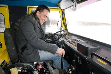 Norbi ül a volánhoz – a verseny-BMW után minden rossz szögben áll, rossz méretű, rossz helyen van, rosszul működik itt. Nem mondja, látjuk az arcán. De óvatosan elindul, kicsit tétován – látszik, hogy a hatásos bemutató után sem akarja tönkretenni, ami a másé – nekimegy az itt már térd fölött érő hópaplannak. Majd szúr egy kettest, az autó megtalálja a terep-ütemet, szépen mozog, Norbi arca felderül, látszik rajta, hogy ebben az ipari szerkezetben végre megtalálta az autót. De inkább mondja el ő a videón.