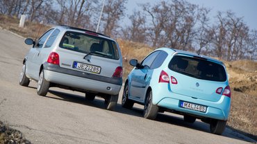 Rátekeredek a kormányra, ösztönösen felveszem a görnyedős twingós pózt, mintha húsz év alatt, amióta gyártják, nem változott volna semmi. Na igen, még mindig nem lehet tengelyirányban húzogatni a kormányt, magaslesen ülünk, közelről fenyít a tető. Mégis az autó virgonc jelleme az, ami kihozza az emberből az olaszt, még ha franciában is ül a magyar, mert ebben a bilikék butikban azonnal furakodhatnéka támad. A nálunk járt Fiat 127-es villan be egyből, abban volt ekkorka bódéban ilyen fáradhatatlan versenyszellem.