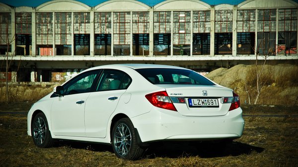 Már a látvány is árulkodó: a négyajtós Civic egyáltalán nem feltűnő jelenség, viszont kellemes arányú, szépen kidolgozott forma. Valójában nem különbözik látványosan az elődjétől; maradt az előre csúsztatott kabin, a hosszú tengelytáv és a rövid hátsó túlnyúlás, csak a vonalakon finomítottak a tervezők. Többen meg is fogalmazták a szerkesztőségben, hogy nem igazán látják a különbséget, pedig van. Az új szedánnál mintha jobban figyeltek volna, hogy minden vonalnak, élnek meglegyen a folytatása, így valamivel lendületesebb, egységesebb lett az összhatás.