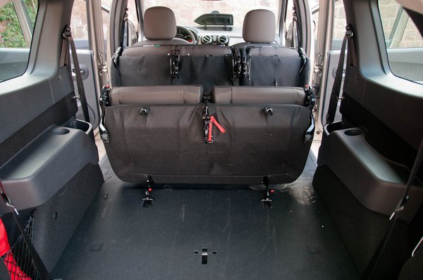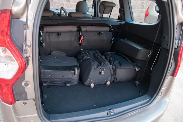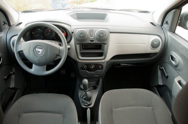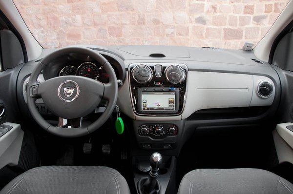 Az ormótlan kasztnihoz aprónak tűnő kerekeket meg csak addig furcsálljuk, amíg rá nem jövünk, hogy Issigonis minis trükkjével van dolgunk: minél kisebb a kerékdob, annál több a hely odabent. Erre elég keményen rágyúrtak. Azonnal elhiszem a marketingesek állítását, hogy a kategória legnagyobb belterét tisztelhetjük a Lodgy-éban - elég megemlíteni a maximális raktér méretét, de literben túl ijesztő lenne, inkább köbméterben írom le: 2,6.