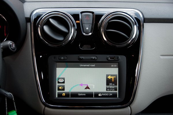 A Dacia büszkesége az új, hétcolos, érintőképernyős navi. Erről kezelhetjük a rádiót, elegánsan odabiggyesztettek egy USB-aljzatot is a felső sarkába, de még Bluetooth-kihangosítót is tettek bele. És működik! A telefon párosítása fél perc, ami piros pontot érdemel, és az egész eszköz kezelését három gombnyomás után megtanultuk. Egyedül a hangerőt lehet valódi gombokkal nyomkodni, minden más a képernyőről megy - annyira adja magát a touchscreen az autóban, hogy tényleg nem értem egyes prémium márkák finnyáskodását, amivel minden erővel próbálják elkerülni az érintőképernyőt. A Lodgyban persze szó sincs finnyáskodásról, inkább a diszkont árat hangsúlyozzák: az eurózónában 430-ért mérik az eszközt. Ennyiért már elgondolkodtató, hiszen egy USB-s, bluetooth-os rádiót és egy autófeltörésre kevésbé ingerlő GPS-t kapunk durván százezer forintért. És megígérték a renault-sok, hogy magyarul fog beszélni, bár a menüjét nem fordítják le.