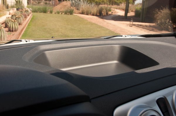 A legbosszantóbb mégis a kesztyűtartó. Bocsánat, a többes szám lenne indokolt, mivel kettő is van, de egyik sem használható. Ami az utasoldalon van, ahhoz szó szerint le kell menni kutyába, mert nagyjából a sípcsont magasságában van, belátni a mélyére pedig lehetetlen. Mellesleg fölötte van egy tök fölösleges polc. A kettes számú pedig a műszerfal tetején van, de az olyan lapos és lecsapott formájú, hogy egy atlasz már nemigen fér bele. A legfapadosabb változatban, amit láttunk, amúgy egyiknek sincs fedele.
