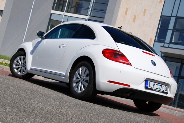 Akkor hát mink nincs? Vezetési élményünk. De szinte semmi. A Beetle 1.2 TSI igen tisztességesen gyorsul,amikor az ember eltekeri a kormányt, szépen befordul, fékez, szökell, ahogy illik, vagy annál még jobban is. A terelgetős lúdbőr - ami a Mininél simán megvan, a bukdácsolós báj, ami a Fiat 500 sajátja, itt érzékszervileg azonban kimerül a látvány élvezetében.
