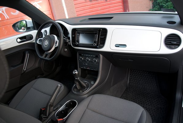 Amiben erős volt a leköszönő Beetle, az a belső tér kidolgozása. A kis váza (avagy a felszerelésének lehetősége) a műszerfalon jópofa geg volt, a kupola alá tett, nagy, kerek műszer szintén kicsit úgy hatott, mintha valami Ikeában árult Tonka Toyból vették volna, a volán pedig, a Kamei-kormányvédő huzatokat utánzó, lyukacsos felületi kiképzéssel az egyik legzseniálisabb kikacsintás volt a retroautózás történetében. Ezek mind hiányoznak az utódból.