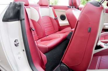 Az első, ami üt, az a beltér színkombinációja. Értem én a Renault igyekezetét, hogy a régi idők klasszikus, mélyvörös kabrió-(mű)bőrbelsejét idézné. De abból nem volt 36 négyzetméternyi, ahhoz krómkeretes körműszerek jártak műszerfal tetejére dobott sofőrkesztyűvel, krómpálcás váltókarral és a gondtalan élet boldogságával. És vörös volt, ez pedig nem az. Sem színben sem minőségben. Leginkább a bőrzúzalékból sütött olcsó kanapékra emlékeztető tapintása, gatyarohasztó szellőzetlensége és sérülékenysége (egy egyszerű farzseb-gomb is képes felsérteni) miatt is messze száműzném bármilyen járműből.