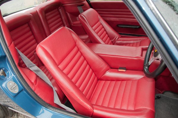 Nagy problémának bizonyult viszont a belső tér. Az eredeti ülésekből, panelekből szinte semmi se lett volna használható, ráadásul Péter piros belsővel, a gyárinál klasszikusabb, kicsit sötétebb – de szintén Lotus-féle - kék fényezéssel képzelte el a kocsit. Óriási mázlija volt, barátja, Erdélyi Zoli a tullni börzén egy kereskedőnél talált egy vég, pont olyan lyuggatott műbőr anyagot, amilyen neki kellett. Az utolsó ismert tekercs volt ez Európában, az árus harminc éve nem tudta eladni.