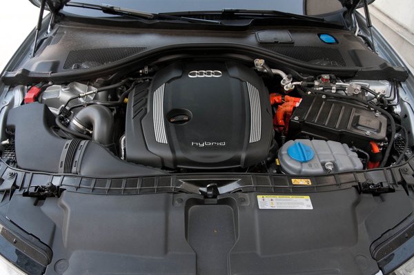 Nézzük: az A6 Hybridbe benzint tankolunk, és mint minden hibridnél, ez is egy relatíve kicsi (1,3 kWh energiát tároló) akkuba táplálja vissza a visszanyert fékenergiát. Maga az elektromos gép az automata váltóban, a hidrodinamikus nyomatékváltó („citrom”) helyére került, ahol rafinált kuplungokkal elérik, hogy képes legyen a benzinmotor nélkül is hajtani az autót, meg azzal együtt is. Hát ennyi.