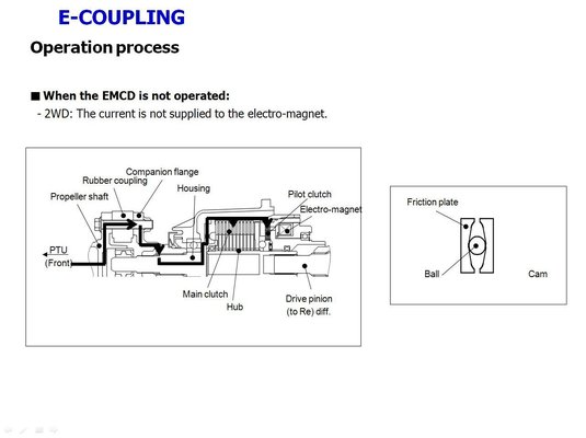 Olyan kíváncsivá tett a megcsúszó első kerekeknél hátrafelé nyomatékot küldő rendszer hatékony működése, hogy pontosabb anyagot kértem róla az importőrtől. Újságírói pályafutásom legkomolyabb műszaki leírását kaptam válaszul - akit érdekel, nézze meg a galériában. Semmi köntörfalazás, csak őszinte műszaki rajzok. A rendszer egyszerű: az alapállásban meghajtott első tengelyt egy többtárcsás, olajban futó tengelykapcsolóval tudja fokozatosan összezárni az elektronika a hátsóval. A gyakorlatban viszont hibátlanul teljesít, és végülis ez számít, nem?