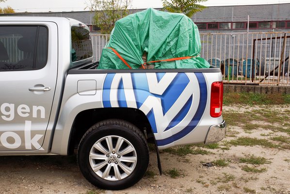 Valahogy mindig az Amarok érkezésekor akad raklapos szálítani valóm, Most is a véletlen úgy hozta, hogy a pickup éppen a Totalcar áruház költözésével esett egybe, így célszerűen azzal szállítottam át a korábbi raktárból az újba az árukészletet. Amikor megérkeztem, a targoncás ember aggódva rakta fel a raklapot, pedig bőven felfért és a platóbélés jóvoltából nyoma se maradt.