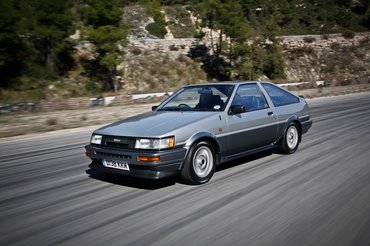 Levezetésként pedig ott állt még két öreg verda is. Elvihetően. Például a GT86 szellemi elődje, az 1983-tól gyártott Corolla AE86. Egy olyan autó, amilyen Tóth Zoli ex-kollégánknak volt, és aminek a lépcsős hátú verziójával Karotta driftel és versenyez, már ki tudja, hány éve, illetve amilyet Bandi és Pista élesztget a tetszhalálból már bő egy éve a magasba tartott Shitgun zászló árnyékában. A Toyota egyik nagy legendája, a driftelés koronázatlan hercegnője.