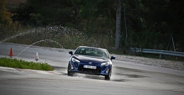 Azt hittem, erről az autóról végül le kell mondanom, mert a svájci GT86 próbája után elvittek bennünket egy egész máshol levő, fellocsolt ügyességi pályára gyakorolni. De a program végén még volt egy óránk, fekete GT86-osommal visszacsoszogtam hát a boxutcába, talán leesik még valami. Leesett.