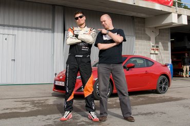 Ez az ember tanított bennünket driftelni egy pont ugyanolyan széria GT86-tal, mint amilyenekkel a barcelonai reptértől a pályáig megtettük az utat. Semmi motortuning, semmi diffimódosítás, semmi keskeny gumi – ahogy az autó kijött a dobozból, úgy.