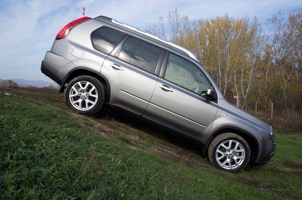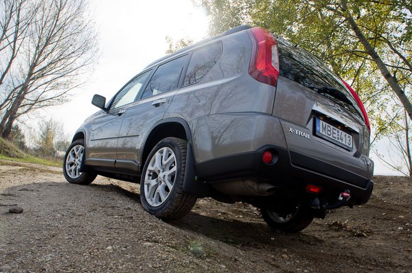 Ez a tulajdonsága, a hosszú rugóút és az egyszerű, olajfürdős-tengelykapcsolós összkerékhajtás pedig még a nem túl nagy terepszögek (28 ill. 24 fok) ellenére is – terepjárókon innen – minden fölé emeli ha elhagyjuk az épített utat. Ott, ahol egy BMW X3 vagyKia Sportage földhöz veri magát ijedtében, ott, ahol egy Audi Q5 vagy GLK Mercedes a belünket kirázva recseg-ropog kínjában, ott az X-Trail csak átlibben hatvannal-hetvennel és nem koppan le, nem üti szét önnön futóművet, nem pattog, mint az ominózus kecske-végtermék a deszkán.
