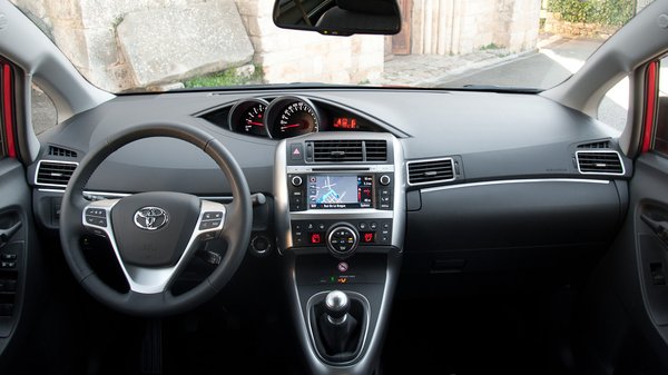A belső térnek egyszerre kell praktikusnak, keménynek és kényelmesnek lennie, mert jellemző használata során ki lesz téve a családi élet sok koptatással járó nyűgeinek. Ezt a Verso jó eredménnyel hozza, bár az általam vezetett tesztautóból már a nizzai sima utakon is jött némi nyöszörgés a műszerfal és az A oszlop találkozása felől, amikor csavarodott a karosszéria. A többieknél ez nem jelentkezett, lehet, hogy csak ezzel a példánnyal történt valami.