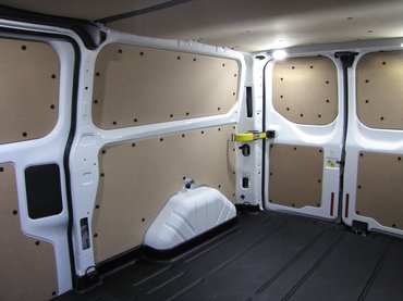 A raktér tele van hasznos részlettel, kellemes meglepetéssel. A nappali világosságot előállító LED-es világítást már említettem, amivel kapcsolatban csak az fáj, hogy 32 ezer+áfa extra költség. Ugyanakkor a teljes raktérborításért felszámolt 75 ezer+áfának minden fillérjét jól költhetjük el, mert nem csak az oldalfalakra, de a tetőre is jut farostlemez, és a teljesen szigetelt padlóburkolatot is megkapjuk. Ez utóbbi egy erős, strapabíró műanyag tálca, amin könnyebb csúsztatni a rakományt, mint egy gumi vagy fa borításon.
