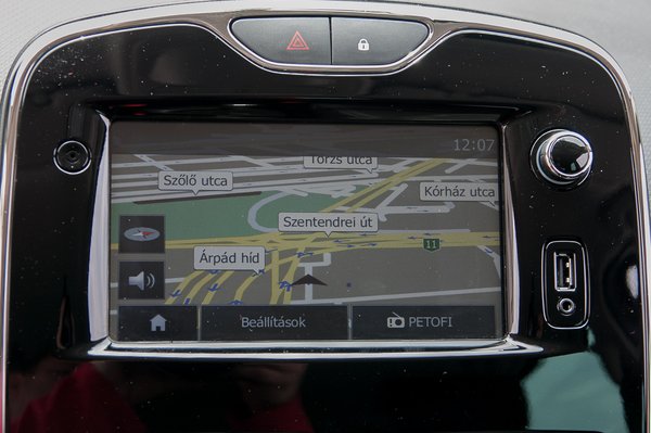 Mindezzel együtt nagyon jól rendezték be a kiskocsit. Azt tudjuk az első tesztautóból, hogy léteznek mindenféle színes műszerfalak és kormányok hozzá, de az Expression szinthez ilyesmi nem jár, csak a feketeség. Igaz, a kisautók körében még így is szokatlanul jó anyaghasználattal: a műszerfal felszíne puha, az ám! Érdekes a középre biggyesztett zongoralakk középkonzol a nagy képernyővel. Már nem is nyavalyognék, hogy mennyire koszolódik vagy karcosodik, mert vannak jó hírek: egyrészt a Tom-Tom navigációt lecserélték egy sokkal jobbra, másrészt az érintőképernyő mellett ott az USB, CD-lejátszó pedig egyszerűen nincs, ergo elromlani sem fog.