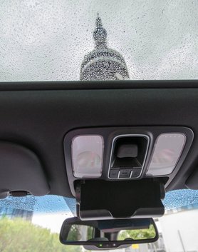 Az utastér-világítás a tetőn az egyetlen tökéletes megoldás: magukat a nagy,fehér burákat kell megnyomni – igazából nem is értem, hogy használhat még oly sok gyártó kis kapcsolókat, hogy aztán az újfajta, nagy fényerejű LED-ek még a tobozmirigyünket is kiégessék. Az üvegtető is jól működik – egy kisebb gomb vezérli az árnyékolót, egy nagyobb, más alakú, ráadásul más színű (szürke) pedig a tolótetőt. Veszélyes, és idegesítő vezetés közben találomra szerencsétlenkedni a gombokkal, a Kia ezt flottul kiküszöbölte.