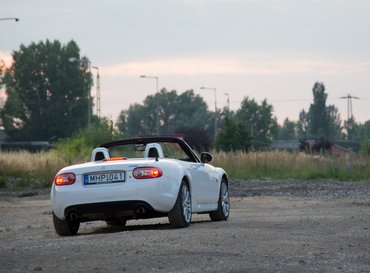 A nyár: az a szűk keresztmetszet. Júniustól augusztusig ugyanis annyira perzsel a nap, hogy délelőtt tíz és délután öt-hat óra között lehetetlen nyitott autóban megmaradni. Vagy beöltözünk, mint H.G. Wells láthatatlan embere - széles karimájú kalap, hosszú ujjú ing -, de az megint csak a szabadságélmény ellen hat, és városban amúgy is tud úgy belassulni a forgalom, hogy megrohadunk. Lesz tehát négy óránk reggel hat és tíz között, meg az este hat utáni Demmerung, ebben a sávban kéne életmódszerűen minél gyakrabban olyan helyen lennünk, ahol jókat lehet autózni. Ha a lakó- és munkahelyem között 10-15 kilométernyi kanyargós, kis forgalmú, vegyesben erdei és mezei út húzódna, megint vennék MX-5-öst, mert erre a célra tökéletes szerszám. Egyébként érdemesebb bérelni, mint venni, bármennyi legyen is a bérleti díj.