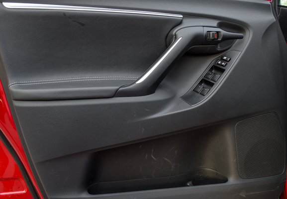 Az ajtókilincs hogy maradhatott ilyen műanyag, rejtély, és hiába van bőr az ajtón, szembeötlő a sivatag-szerűen terjeszkedő kemény műanyagok hatalmas aránya. A képek tanúsága szerint ráadásul könnyen karcolódik is, bár nem tudom, mi karcolhatta ezt össze, hiszen az ajtó közepéhez tűsarkú cipő csak nagyon elhivatott pornófilm forgatásán kerülhet. Mind a négy villanyablak automata, de a legszimbolikusabb különbség a Carenshez képest, hogy annak egy kivehető zseblámpa a csomagtérvilágítása, a Versóban ugyanott a tolatóradar kikapcsológombját találjuk. Biztos van, aki szerint utóbbi a hasznosabb és szexibb, de én nem tartozom közéjük.