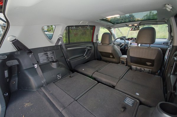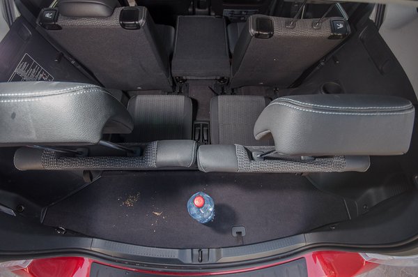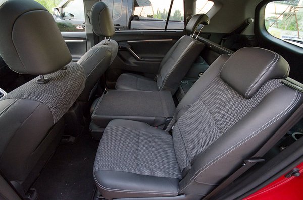 A rendszer maga csillagos ötös, nagyon könnyen, egy-egy mozdulattal ki lehet emelni a két leghátsó ülést, és a csak két állást (fent-lent) ismerő fejtámlát. A hátsó ülésekhez van pohártartó, bár aki oda befér, aligha van keze-lába, úgyhogy nem sok hasznát veszi. A középső üléssor előre-hátra csúsztatható, a támlák síkba döntése pedig több mint meggyőző, de ez az üléstologatás is csak olyan, mint a tőzsde: zéró végösszegű játék. Valakinek mindenképpen el kell venni a lábterét. Lehet csinálni árnyékolót a hátsó ablakra, nyomasztó bunkerablakot a harmadik üléssorhoz, ami annyit ér az ott ülőknek, mint Jézusnak a kereszten a lándzsahegyen felé nyújtott ecetes rongy.
