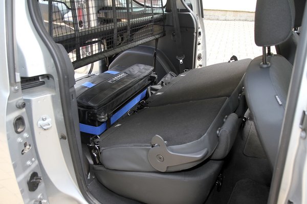 A másik kellemes meglepetést az első ülések jelentik: ránézésére olyan semmilyenek, szinte alig formázottak, ülni viszont nagyon jó rajtuk. A hátsó ülések kényelméről nem tudok nyilatkozni, remélhetőleg azokon sem fájdul meg az utasok háta, ha igen, majd a népítéletekből kiderül. Nagy erényük viszont, hogy egy-két mozdulattal összehajtogathatók és az első ülések mögé billenthetők. Merthogy így az eleve lehengerlő méretű, 800 literes csomagteret (Volkswagen Caddy: 750 liter, Citroën Berlingo: 675 liter) 3000 literesre bővíthetjük, akkora légtérben pedig már elég sok holmi elfér. Rögzítőfülek már az alapkivitelben is vannak, de csomagban vagy egyedi rendelésre a csomagtartó alját védő műanyag tálcát, és rolós kalaptartót is kapunk. Kedvencem a csomagtér-elválasztó háló, illetve az annak közepén található nyílás, amin át a család hű kutyáját simogathatjuk útközben, vagy enni-inni adhatunk a büntetésből hátrazárt gyereknek.