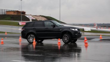 Ehhez képest a játszótérnek becézett területen felállított szlalompályán, második feladatunknál, olyan vehemensen törtetett végig a Sport, hogy az becsületére vált volna egy Porschének is. Mondjuk egy Cayenne-nek. A kormányzás ugyan nem túl közvetlen, de a túl rövid áttétel talán nem is illene egy ekkora téglához. Az aktív stabilizátorok viszont, amelyek terepen szabadon engedik mozogni a futóművet, itt bekeményítenek, és alig engedik dőlni a kasznit. Méreteihez, súlyához, magasságához képest alig billeg, alig bólogat, főleg, ha a régihez hasonlítjuk.