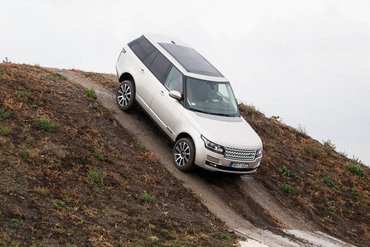 Amikor az első, bemutató kört tettük meg az instruktorral, kicsit szuszogtam a hátsó ülésen, a lejtő felé eső jobb oldalon. Néhány kivételtől eltekintve általában jobb a kormányba kapaszkodni. Amikor aztán megkaparintottam, szó szerint felemelő érzés volt felkaptatni a siratófalon, nem is a hajtáslánc, hanem talán a felemelt légrugózásnak köszönhető, megnyugtató terepszögek miatt. Szépen neki lehet futni, a felezőváltóval és a 600 Nm-es nyomatékkal finoman lehet adagolni a gázt, de ha falábúak vagyunk, akkor is megoldja az elektronika. Ásítva megyünk fel az eső áztatta 90%-os emelkedőn, csak arra kell figyelni, hogy ne ugrassunk a dombtetőn.