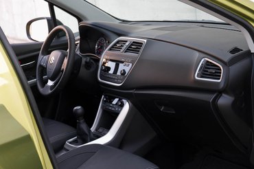 Másutt is ugyanez volt a problémám az S-Crosszal: megmagyarázhatatlanul váltották egymást a kellemesen igényes és a megmagyarázhatatlanul egyszerű megoldások. A műszerfalon például egész korrekt illesztésekkel találkozunk, az ajtókárpit azonban még csak vonalban sincs a műszerfallal annak ellenére, hogy láthatóan illeszkedniük kellene. Ugyanígy van fedélzeti számítógép, kulcs nélküli indítás, hifi és tolatóradar, de nincs navigáció, sem tisztességes központi kijelző – ezen a téren kénytelenek vagyunk megelégedni egy kb. 15 éves műszaki színvonalat képviselő nagypixeles kijelzővel.