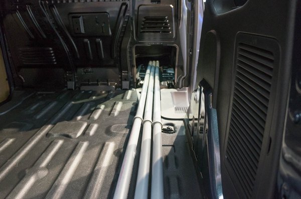 Előrehajtva és feltűnik egy ajtó, amit kinyitva extra hosszú izéket is elhozhatunk a barkácsáruházból. Így a közel kétszeresére növeljük a raktér hosszát, összesen 3 illetve 3,4 méterre, tengelytávtól függően. Egyébként a rövid kasztni teljes hossza 20 centivel nőtt, míg a raktér 2,6-ról 2,8 köbméterre.