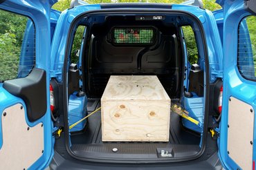 A Courier, motorváltozatoktól függően úgy 640-660 kilóval terhelhető, ebből jön le az emberek élősúlya, vagyis ha két vékonyabb dongájú dolgozó ül be, akkor még vagy fél tonnát lehet a raktérbe becuccolni. A 150 kilónyi teher ehhez képest nagyjából harmad terhelést jelent, viszont a képeken is látszik, hogy a hátsó futómű meglepő mértékben leült tőle. Állítólag ravasz (progresszív) hátsó rugók vannak hátul, tehát a terhelés növelésével nem fog az aszfalton szikrázni a Courier fara - ezt kénytelenek vagyunk elhinni, nem próbáltuk. Ahogy üresen sem mentünk a kocsival, így, másfél mázsa teherrel nem ráz, de hasonlóan leterhelve már bármelyik kis furgon jól rugózik.