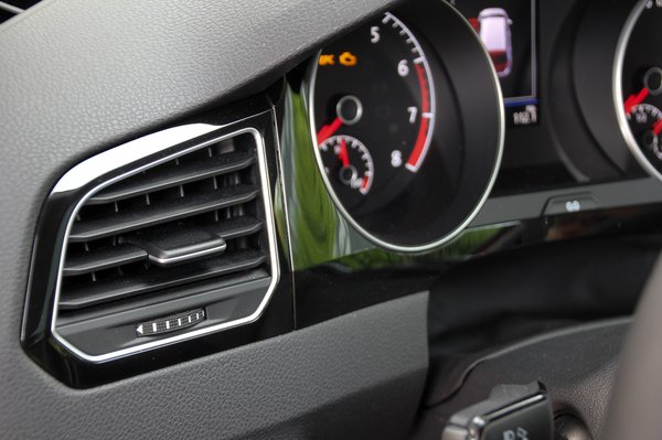 Elöl a szokásos Golf-hangulat uralkodik, de a műszerfal nem ugyanaz, mint a szimpla Golfban. Minden gomb, kezelőszerv a helyén, semmi meglepetés. Illetve egy apró jópofaság, amire én más autóból nem emlékszem: a parkolókártya-tartó sliccek a klímakonzol felett. Kulturált, kényelmes megoldás, szerintem le fogják utánozni. (Papp Tibi kiegészítése: "Na, ezt ők is utánozzák, a Daewoo Matizról. Nem ők fújták a Passat-szelet.") Ami nem újdonság, csak nekem, aki még nem ült Golfban, az a kormánykerék nagyon furcsa formája. Nem értem én ezt az élet, amit belevasaltak, nekem kimondottan kényelmetlen volt, bőrborítás, meg kormányfűtés ide vagy oda. De az biztos, hogy akár a kormányon lévő gombokat, akár a műszerfal egyéb alkatrészeit nézi az ember, szó szerint kézzel tapintható a minőégérzet, minden a helyén, minden finoman működik. A legmagasabb, Highline felszereltségnél pedig a sok selyemfényű króm keret és díszítőelem tovább javítja az összképet, amit a sok lakkfekete felület sem tud elrontani. Mert a fényes fekete felületek pár óra leforgása alatt látványosan porossá, ujjlenyomatossá válnak. De hiába is mondogatjuk már egy jó ideje, hogy lassan túl kellene lépni a zongoralakkon, a vevők minden bizonnyal igénylik, ezért is tartanak ki a gyártók ennyire lelkesen a csillogó fekete betétek mellett.